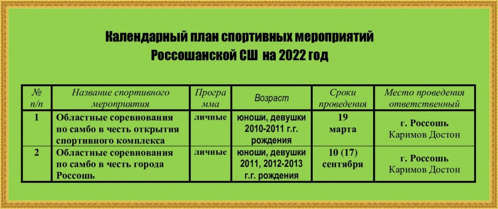 Календарные планы отделений самбо Воронежской области