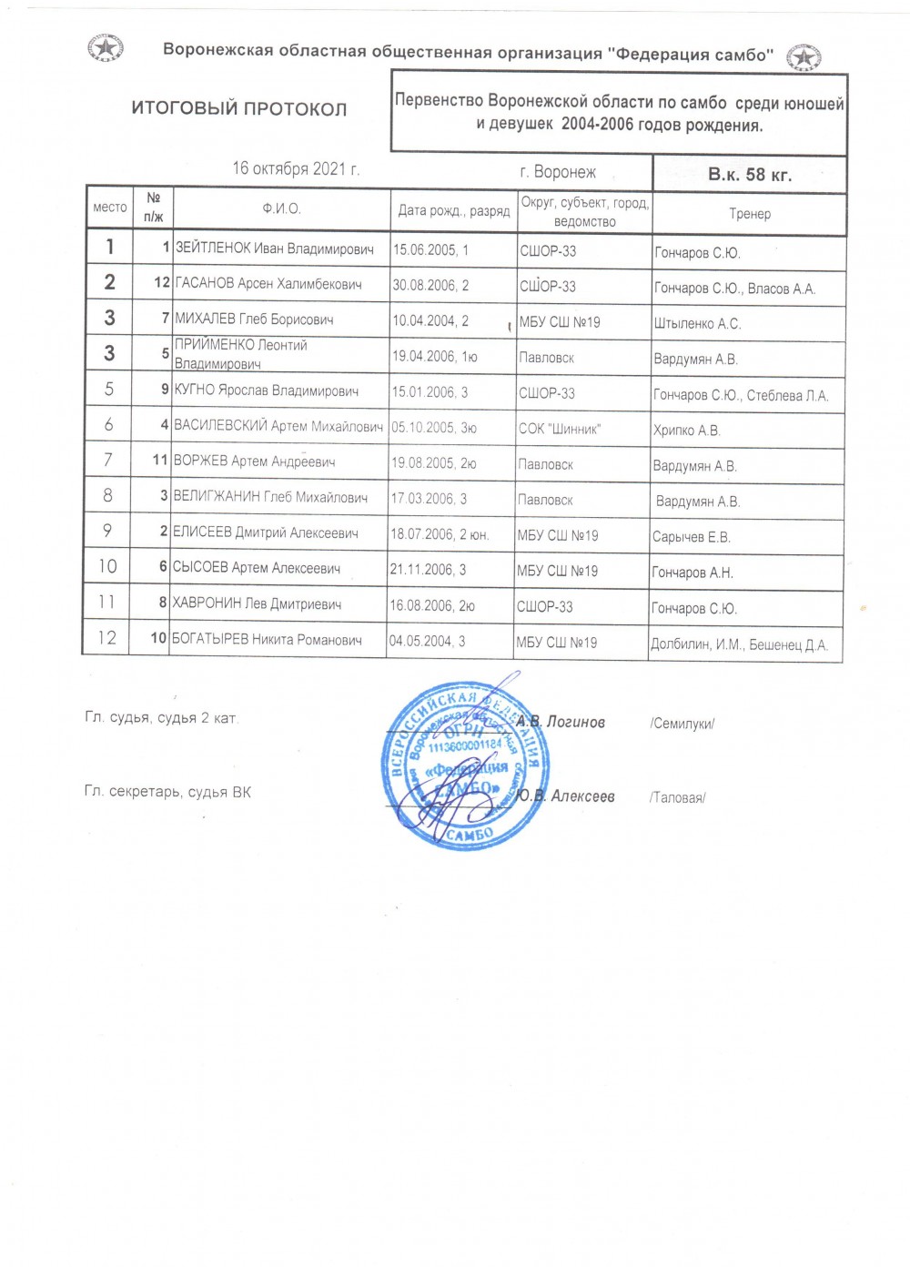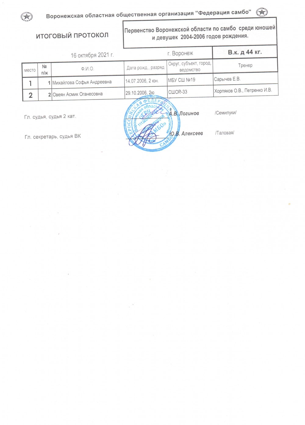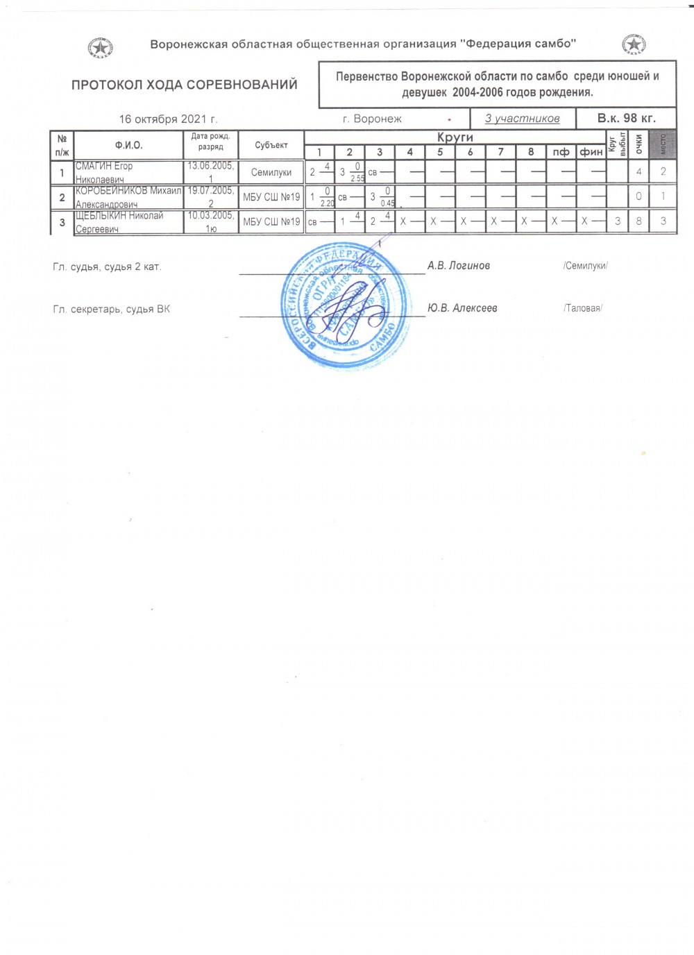 2021.10.16 ПВО по самбо среди юношей и девушек 2004-2006 г.г.р. г. Воронеж