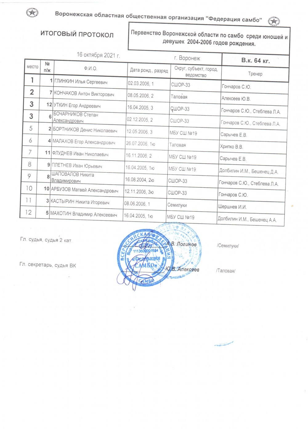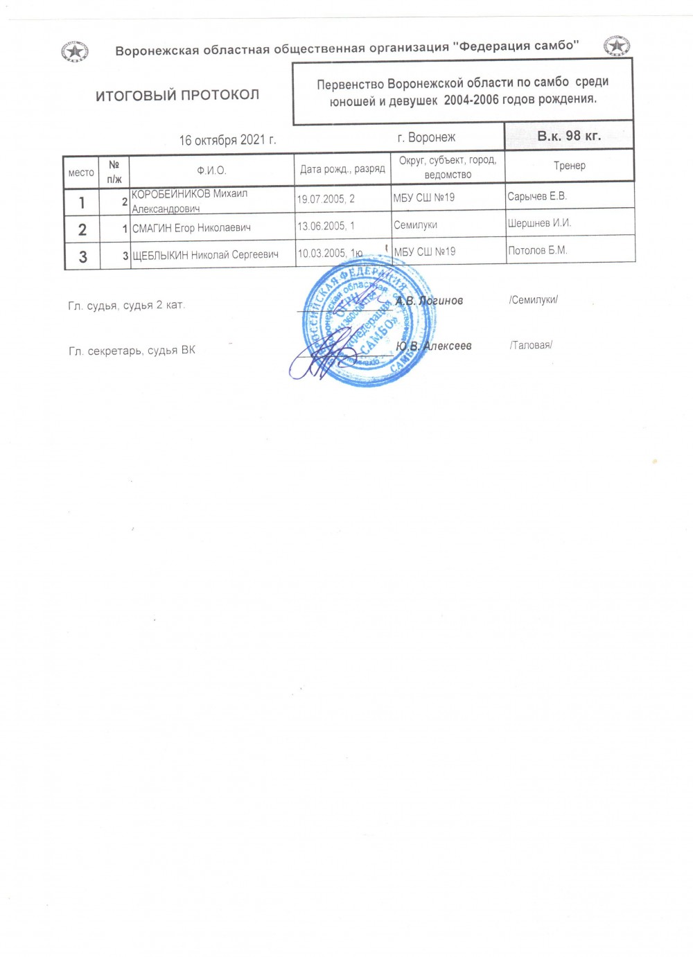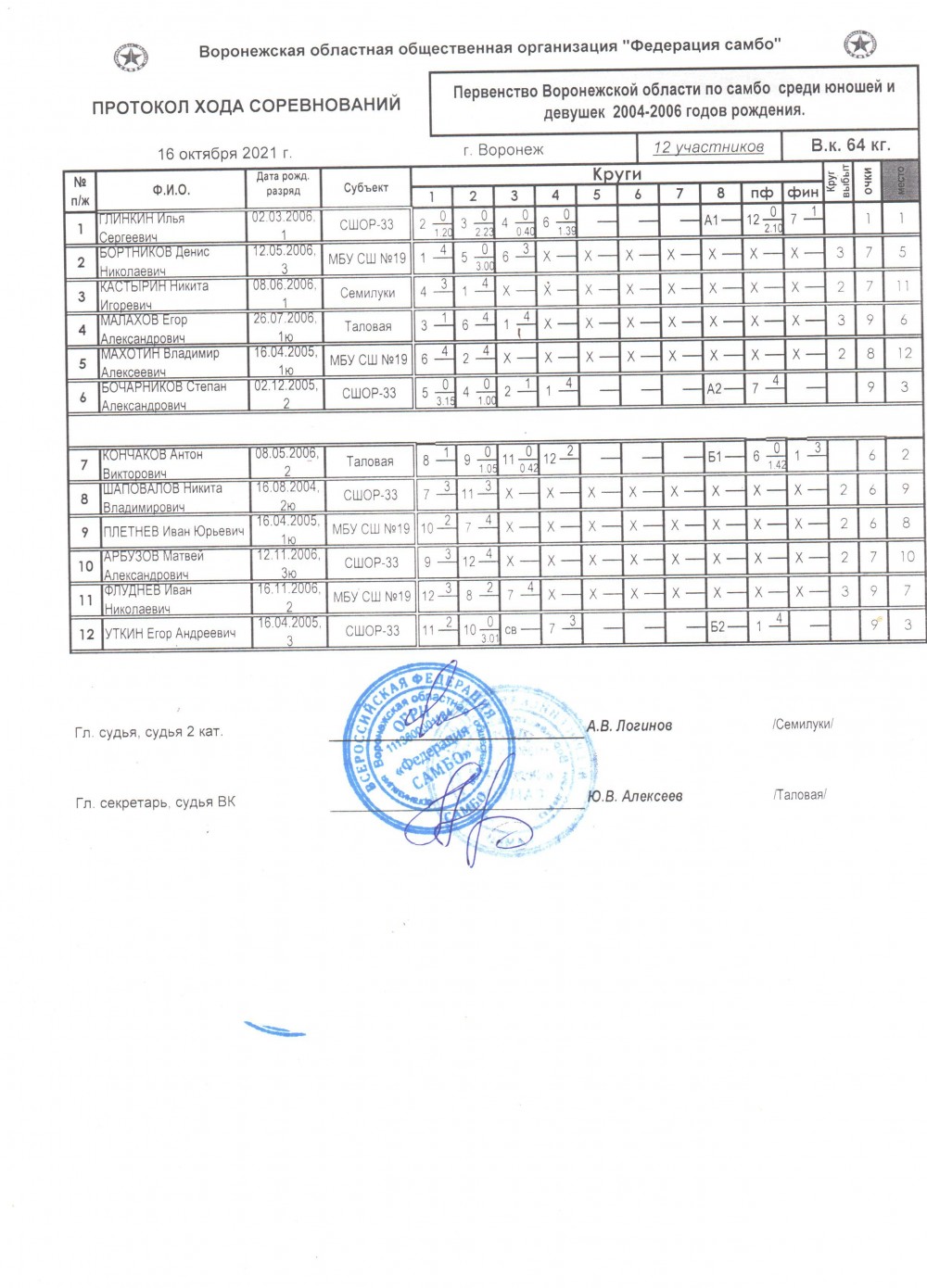 2021.10.16 ПВО по самбо среди юношей и девушек 2004-2006 г.г.р. г. Воронеж