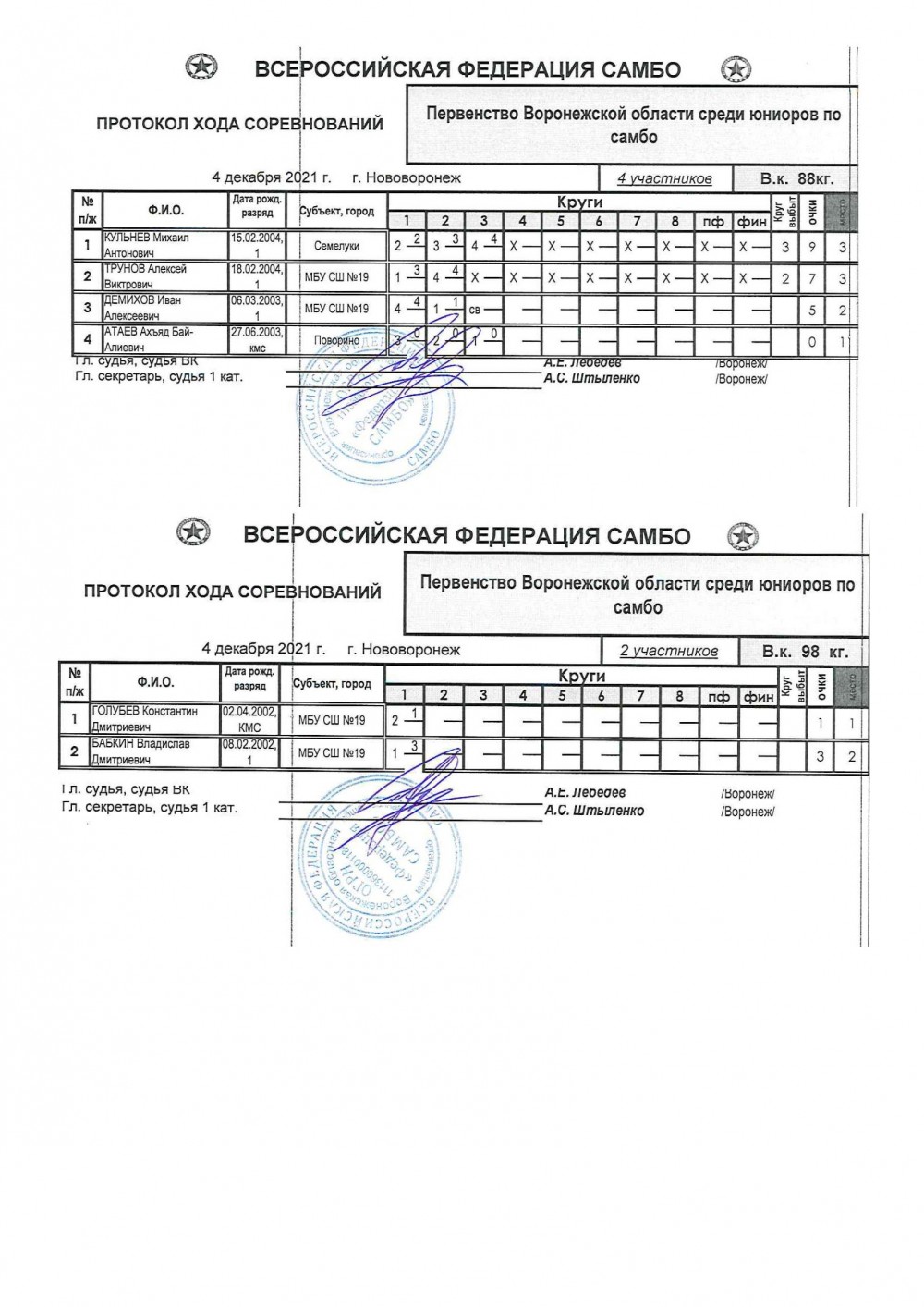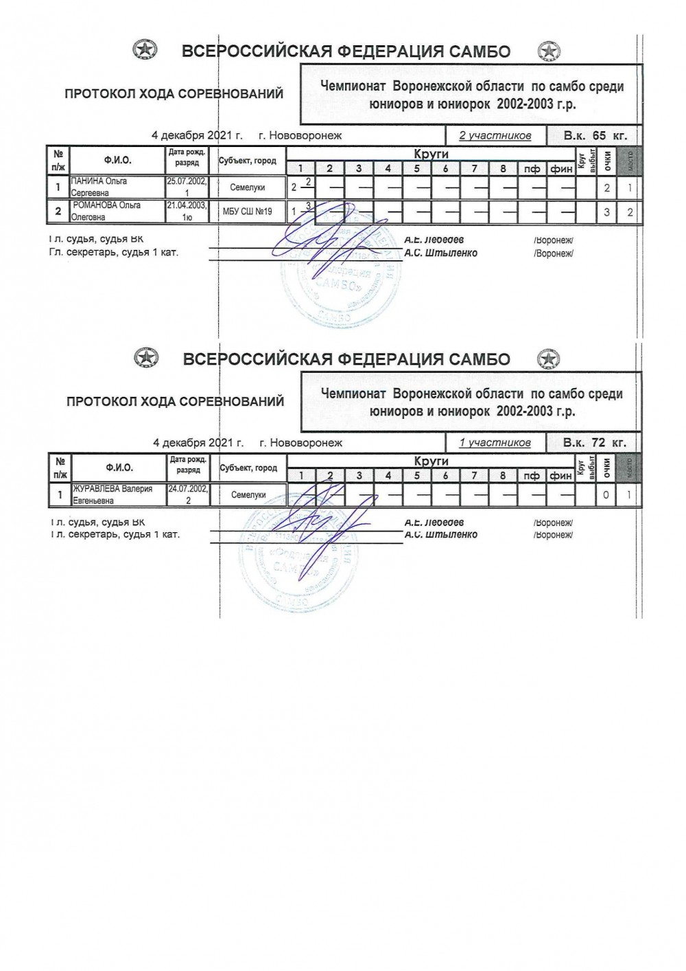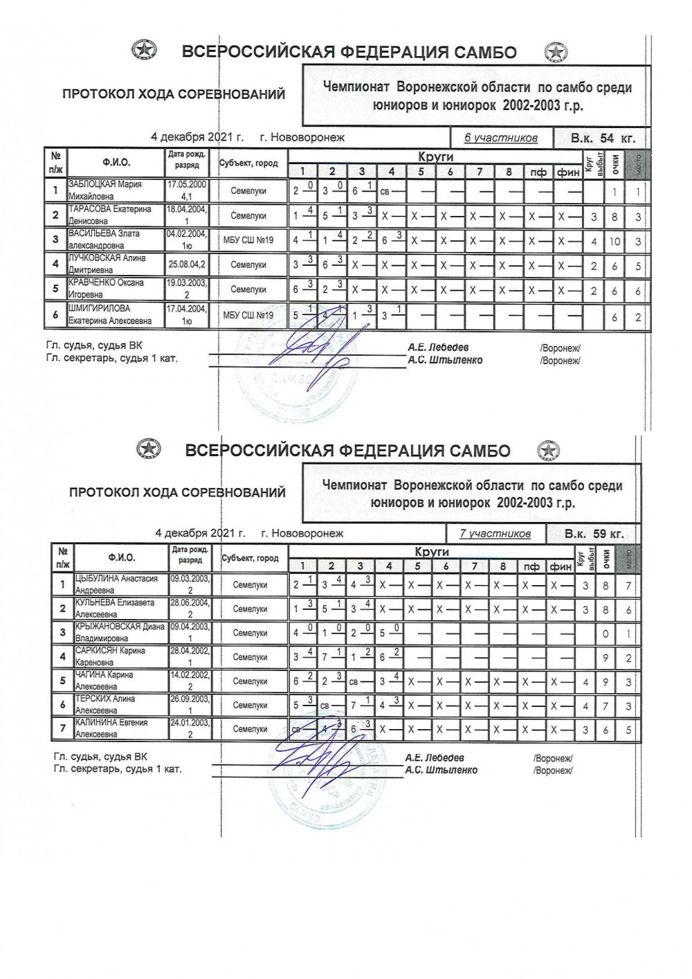 2021.12.04 ПВО по самбо среди юниоров и юниорок 2002-2003 г.р. г. Нововоронеж
