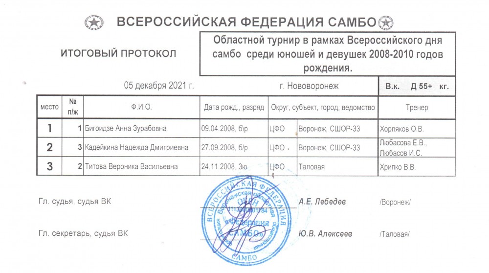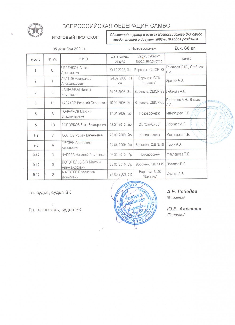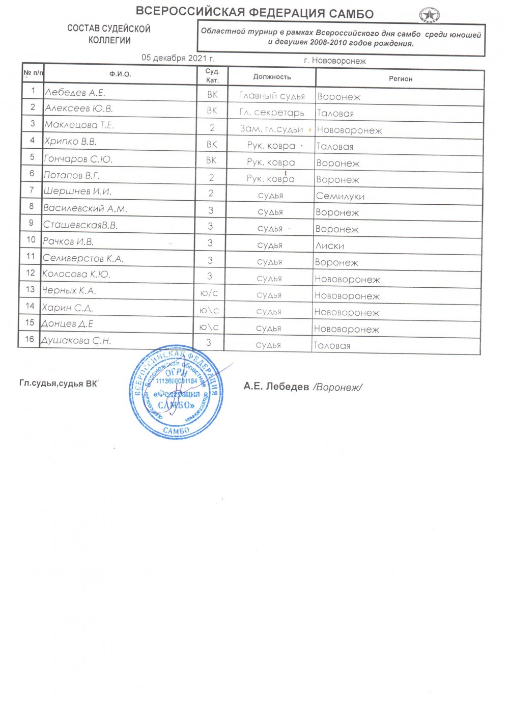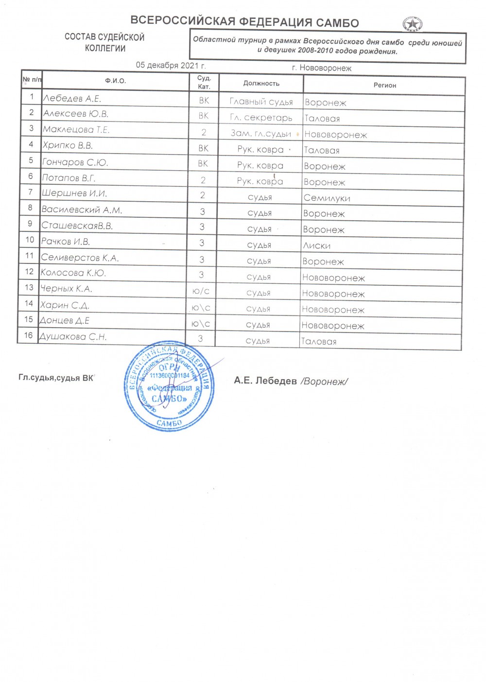 2021.12.05 ВОТ по самбо среди юношей и девушек 2008-2010 г.р. г. Нововоронеж