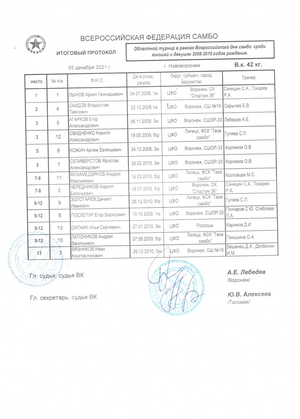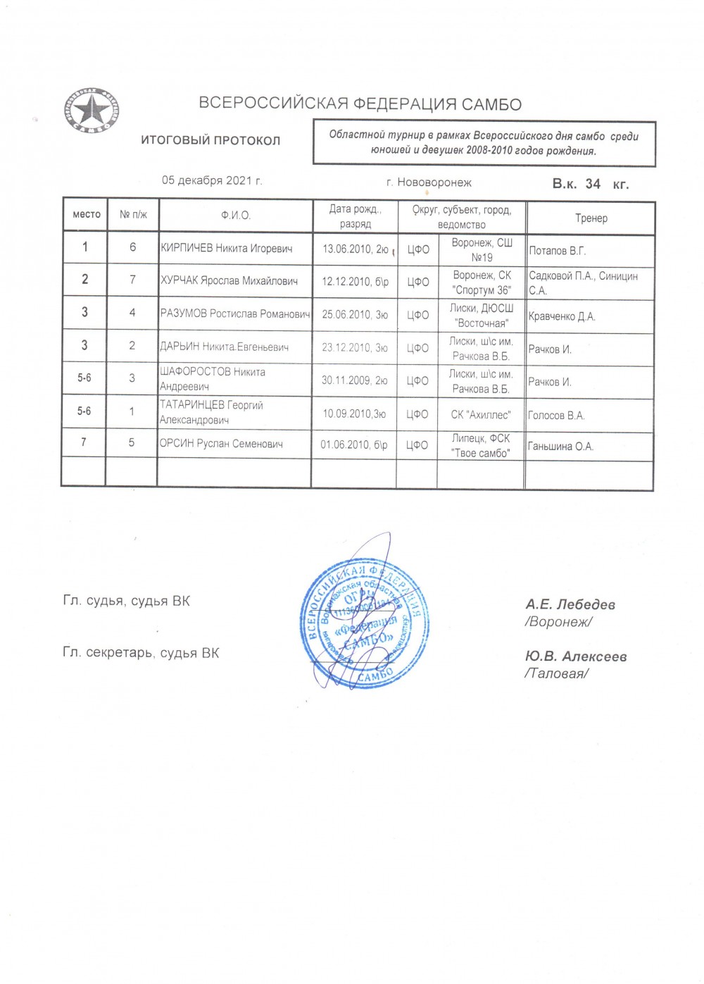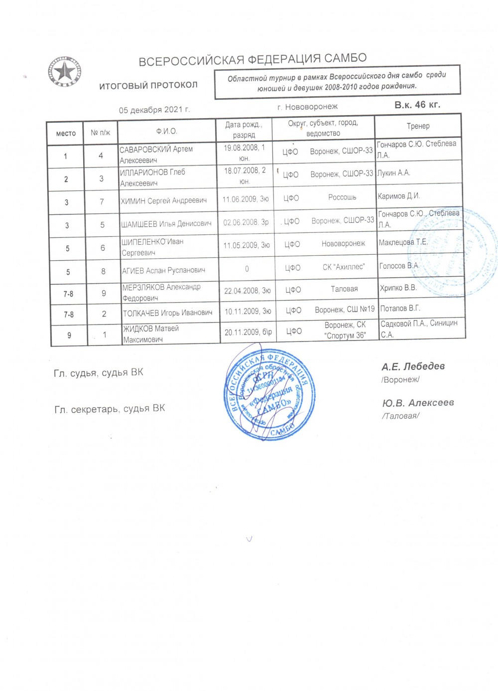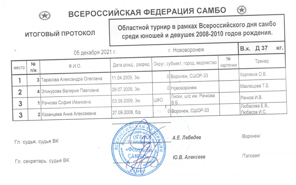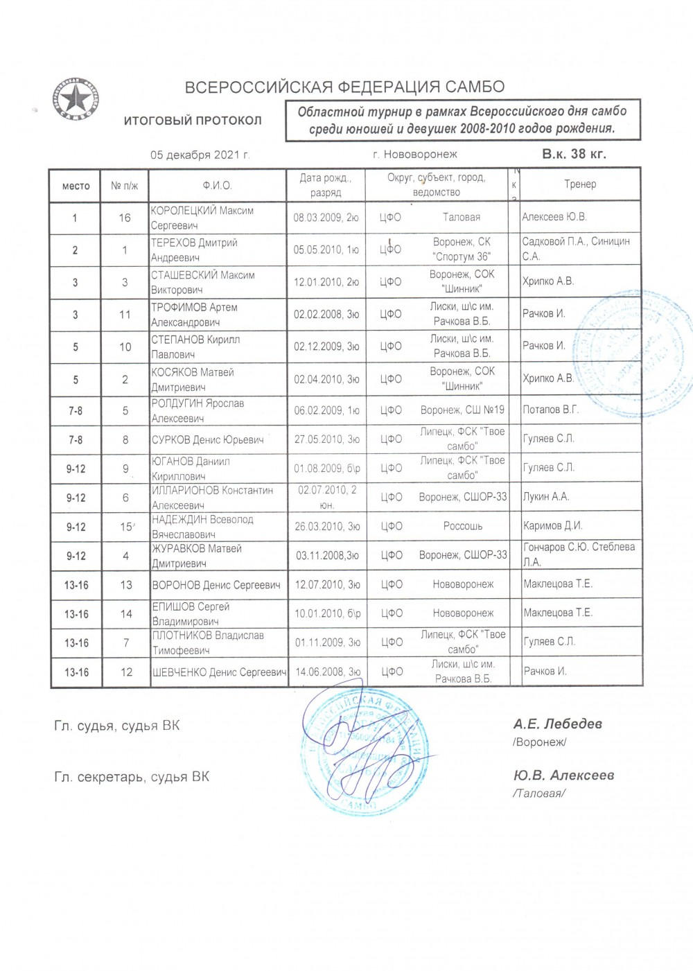 2021.12.05 ВОТ по самбо среди юношей и девушек 2008-2010 г.р. г. Нововоронеж