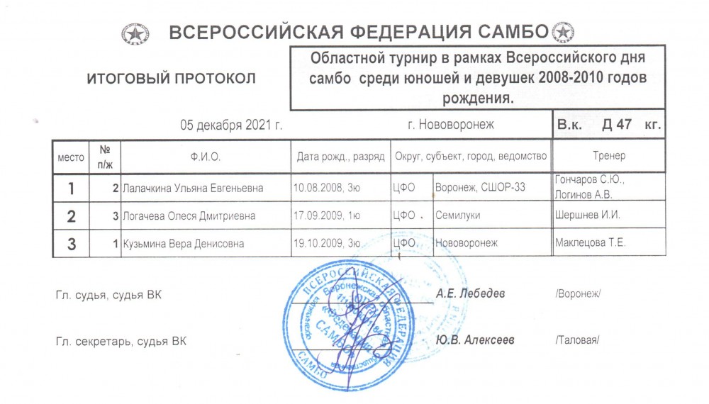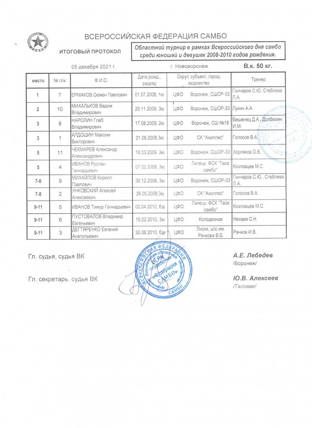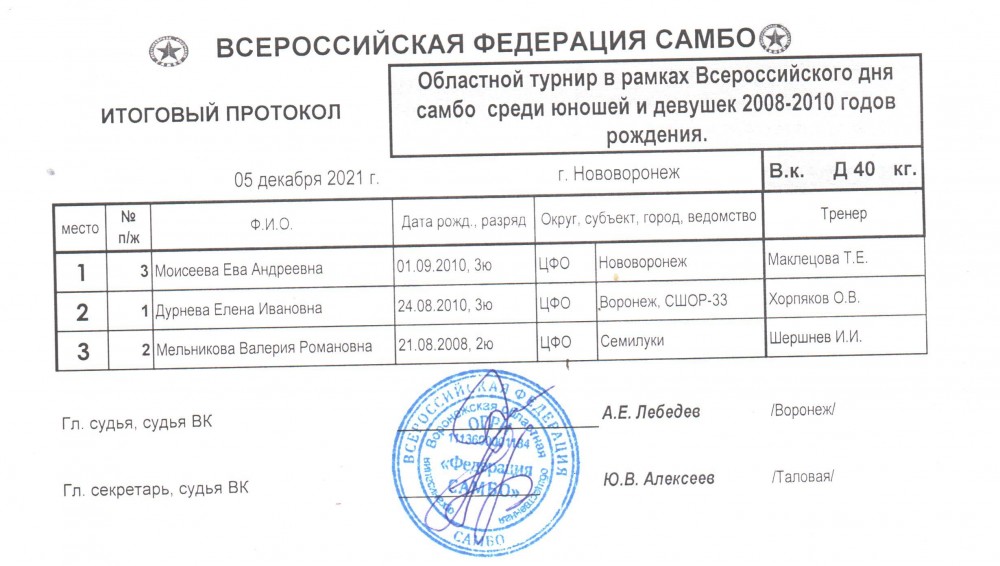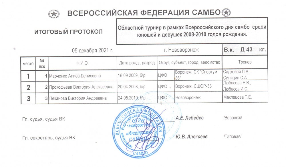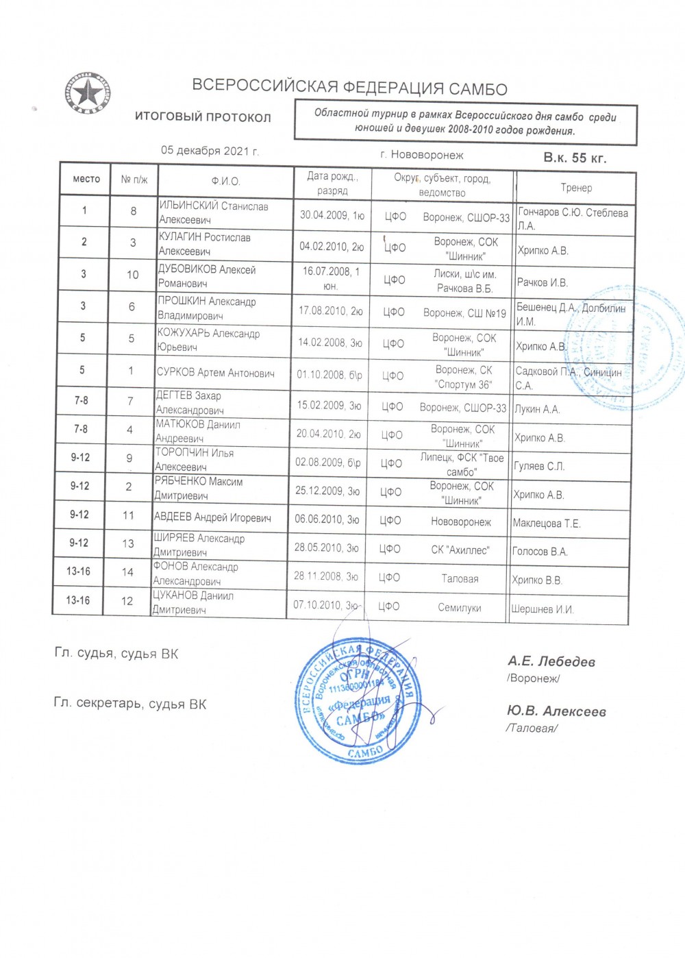 2021.12.05 ВОТ по самбо среди юношей и девушек 2008-2010 г.р. г. Нововоронеж