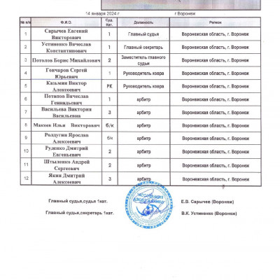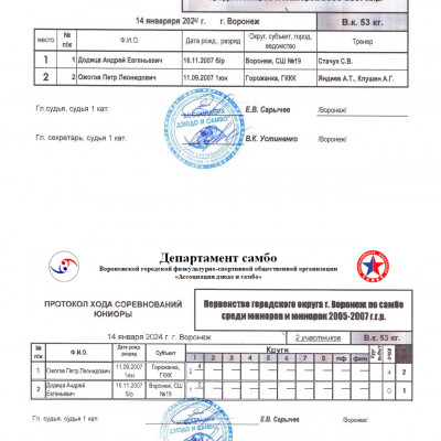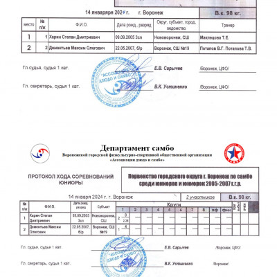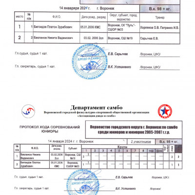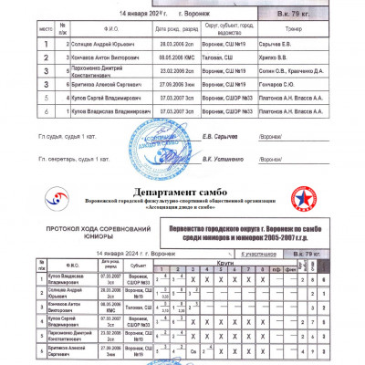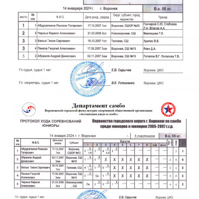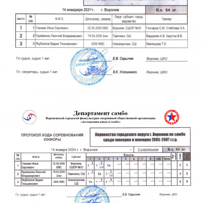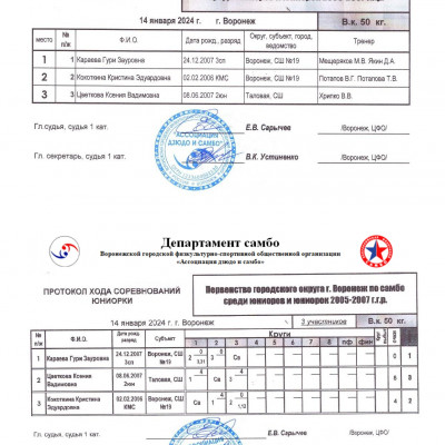 2024.01.14 Первенство городского округа город Воронеж по самбо среди юниоров и юниорок 2005-2007 г.г
