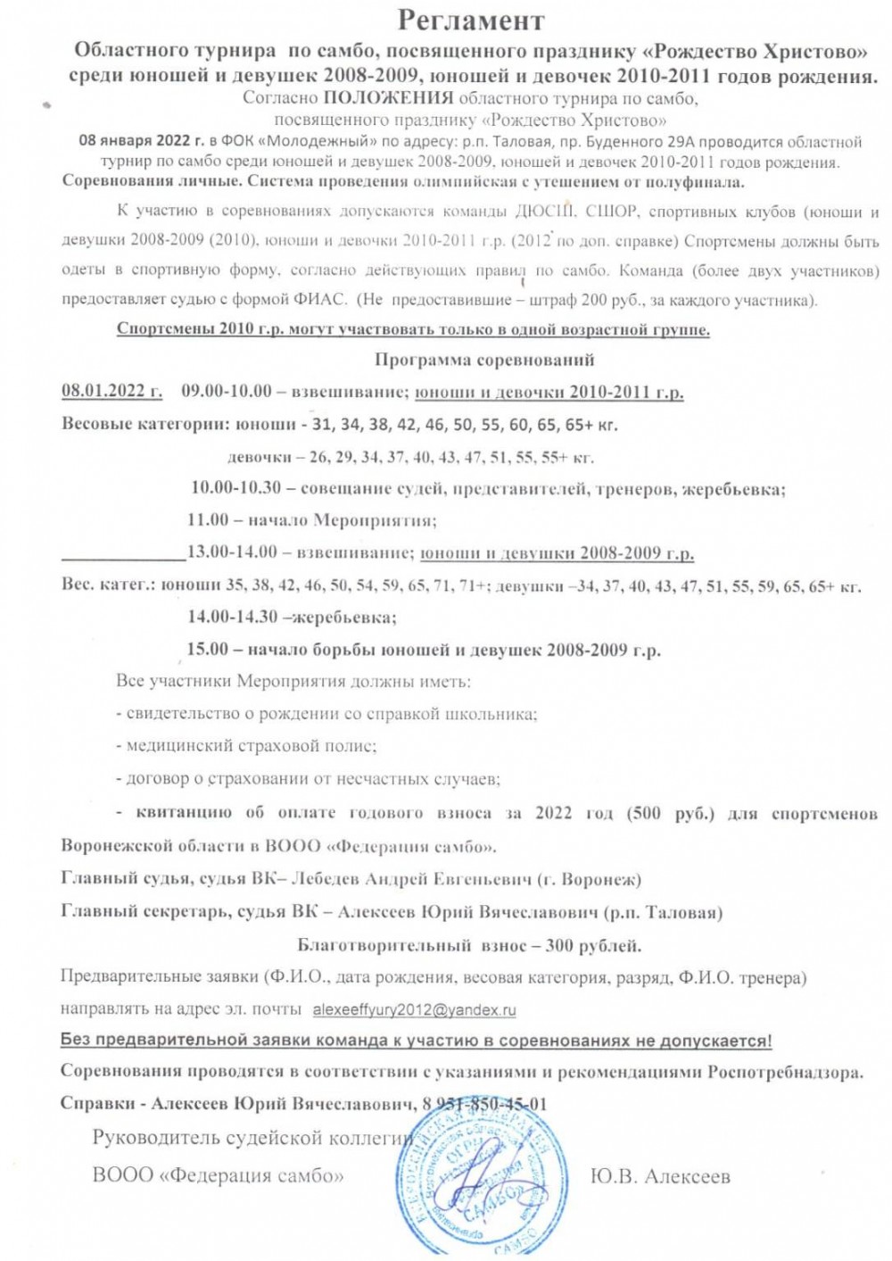 2022.01.08 ВОТ по самбо "Рождество Христово" 2008-2009; 2010-2011 г.р. ТАЛОВАЯ