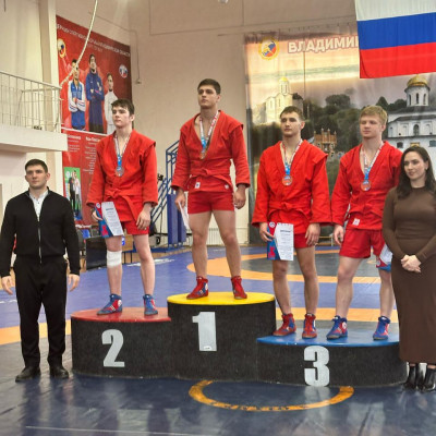 Пьедестал веса до 98 кг. 1 место Сидоров Дмитрий (тренер Лукин А.А.)