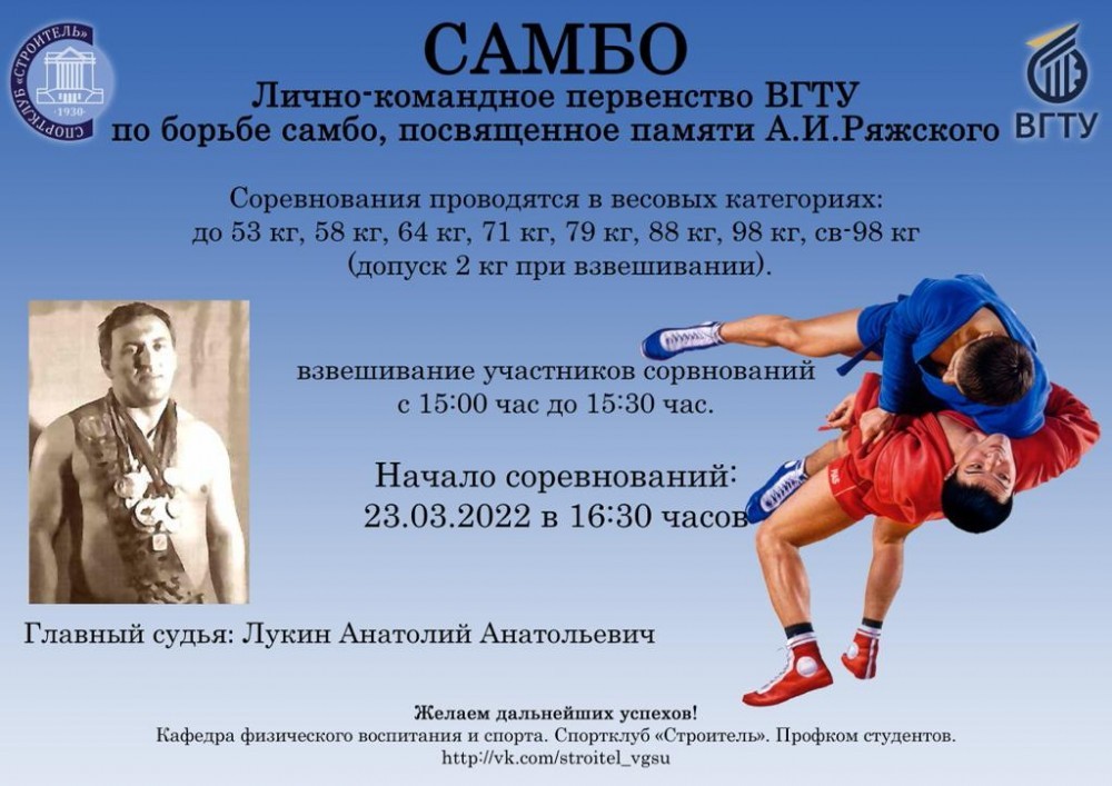 2022.03.23 Лично-командное первенство ВГТУ по самбо, памяти Александра Ряжских